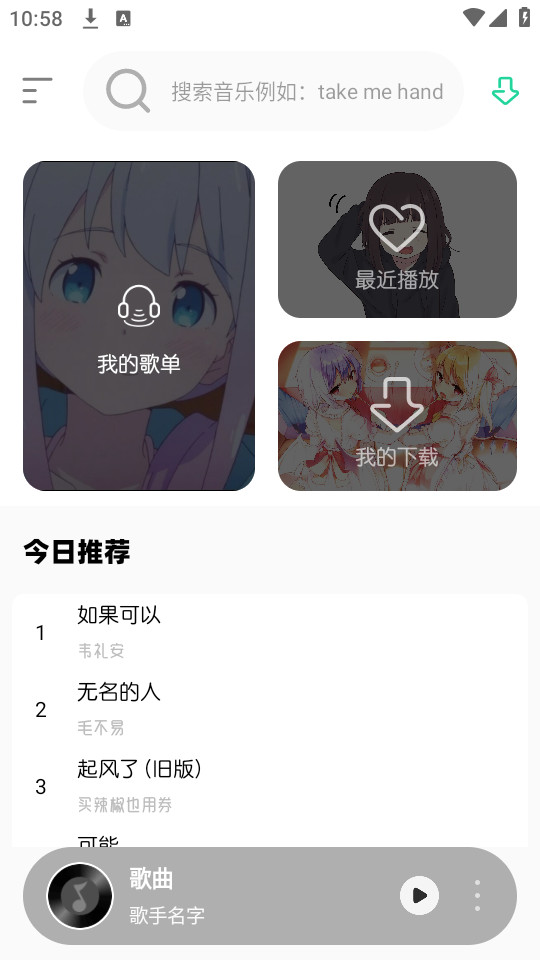 2、进入首页,内置丰富的音乐曲库资源,也可以通过上方的搜素框进行关键词查找。