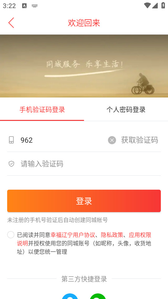输入手机号验证码,勾选用户协议,点击登录就能够自动注册登录了