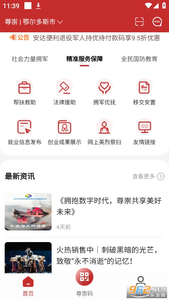 “退役军人尊崇app软件”(简称“尊崇”)是由内蒙古鄂尔多斯市退役军人事务局组织开发的一款面向广大退役军人和拥军志愿单位,具备帮扶援助、就业创业、志愿服务、权益维护、拥军优抚、移交安置、政策宣传等功能的综合性服务平台。