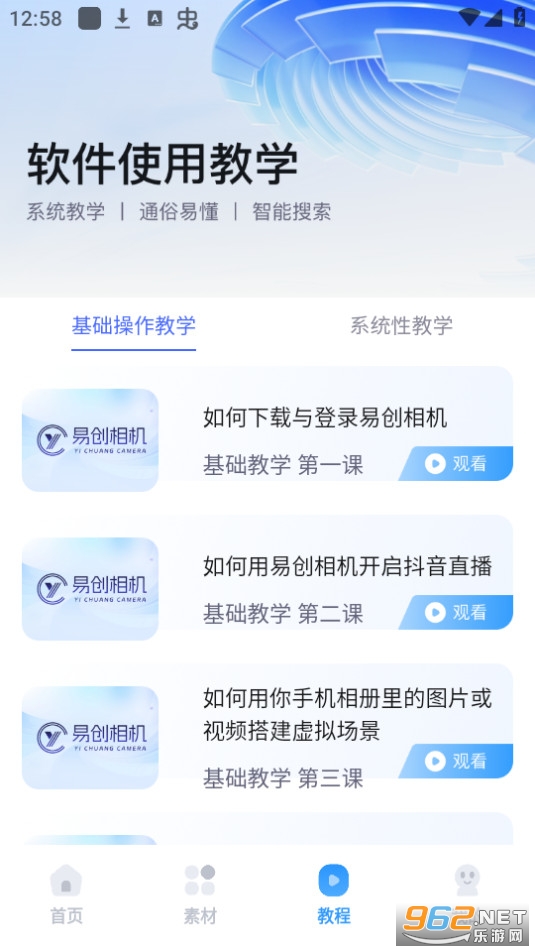 3.在基础操作教学之后查看《如何用易创相机开启抖音直播》,点击观看手把手视频教学课程。