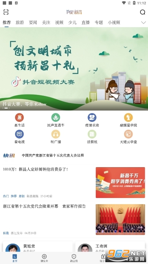 最新的资讯内容置顶于界面,每次打开我爱新昌app一眼就可以快速查阅;