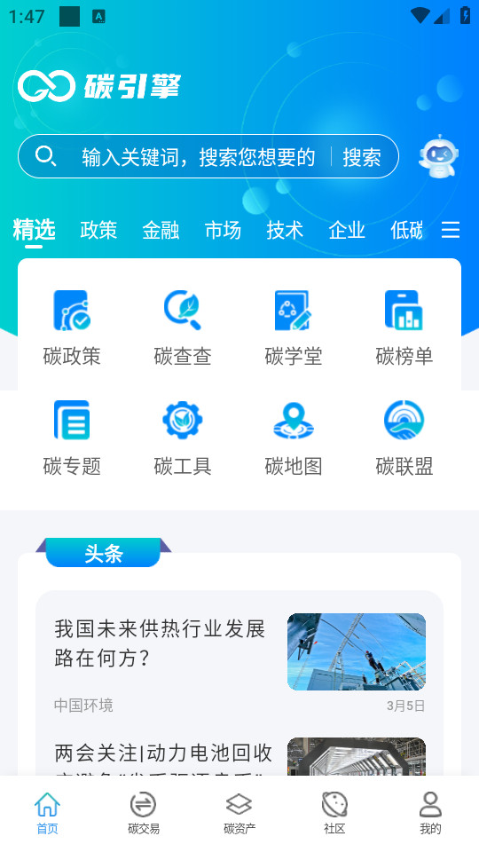 碳引擎App是中国环境报旗下精心打造的一个双碳领域的移动客户端,于2026年正式上线运行,也是国内双碳领域专业新闻App,适应当前新媒体发展趋势及广大受众需求。