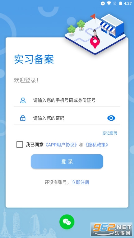 第一步:在学校发布实习计划期间,学生打开【实习备案】APP,点击底部导航栏【实习备案】功能,点击【前往报名】,如下图所示