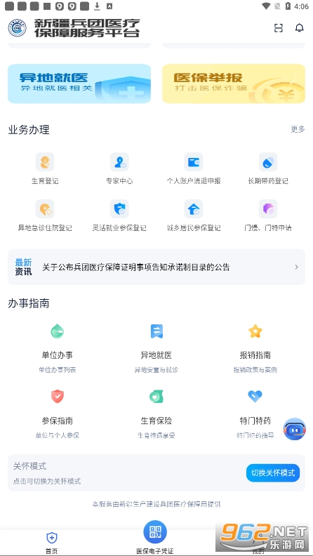 重庆医保App,为公众提供统一使用公共服务的入口,面向参保人提供政策查询、信息查询、业务办理、移动支付、长护险申请、评估、服务、评价等服务,实现医保电子凭证领取和权益享受,满足全市医疗保障服务线上通办。