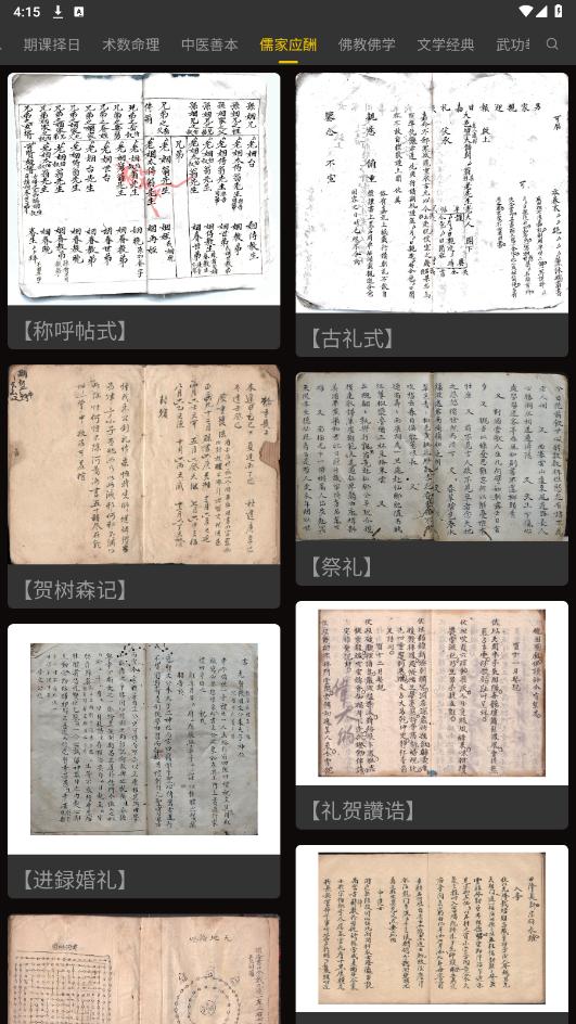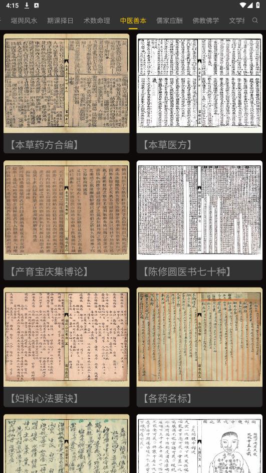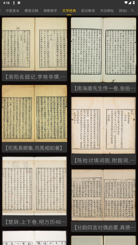 打开渐越古籍app,在最上方选择自己感兴趣的古籍分类