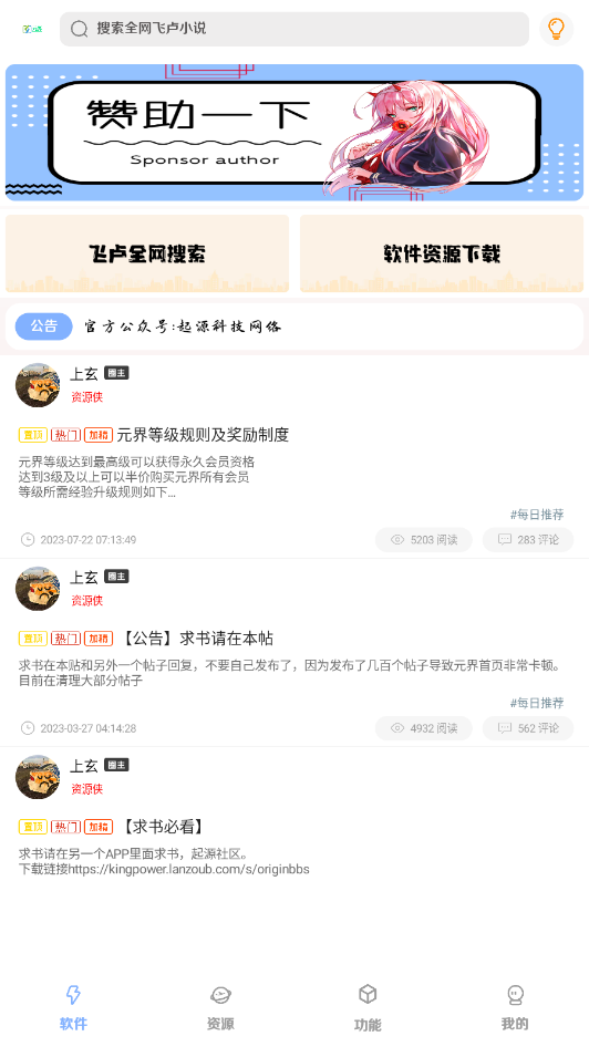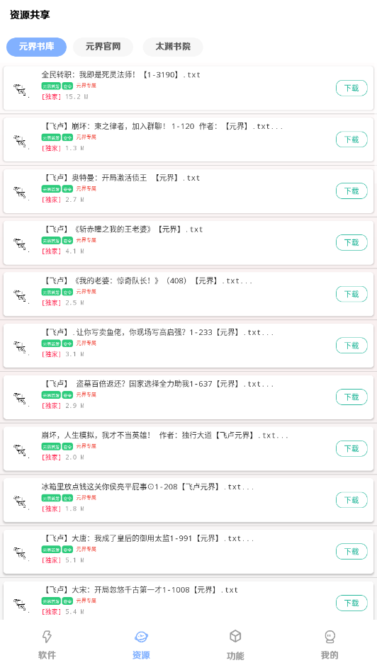 《元界app》作为一款专为飞卢小说粉丝设计的下载分享社区软件,它提供了丰富的小说试读资源及强大的资源分享功能,让你可以轻松获取并享受飞卢小说的独特魅力。无论你是寻找热门畅销书还是小众佳作,元界app都能满足你的需求,让你的阅读之旅更加丰富多彩。