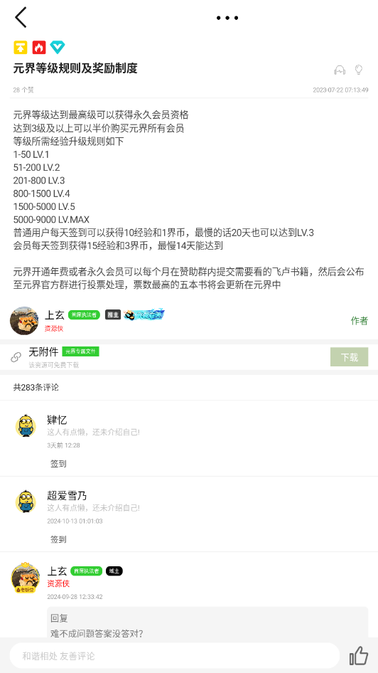 社区分享板块,互动交流:除了丰富的试读资源外,元界app还设有专门的社区分享板块,让用户可以自由地分享自己的阅读心得、推荐好书、交流看法。这里汇聚了众多飞卢小说的忠实粉丝,你可以与他们一起探讨小说的精彩情节,享受阅读的乐趣。