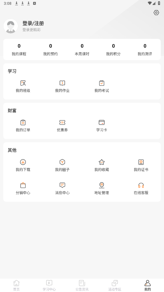 进入个人中心,点击上方登录注册