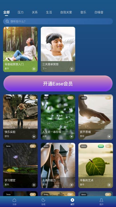 Ease专门原创专业内容,帮助您睡得更快,睡得更沉,醒来更精神。Ease将陪伴您从压力、焦虑、情绪中释放自己,生活更开心、更健康。