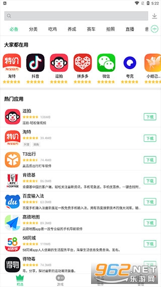2.客户端提供各种分类、排行以及软件游戏管理功能
