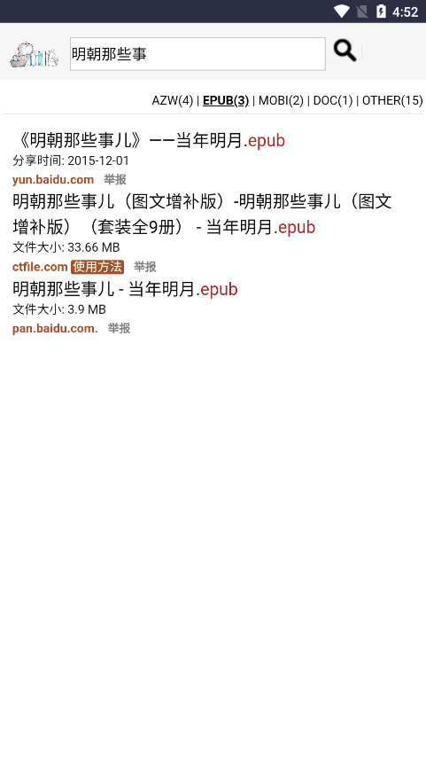 打开网站页面,一股清爽气息扑面而来,真是简洁到极致了!别看它仅有一个输入框,里面的内容可丰富了,有pdf、mobi等6种格式提供下载,完全免费下载,而且不限制下载次数。网站覆盖的资源库,包括百度云盘、新浪爱问、小木虫等主流资源共享网站。网站能检索提供包括PDF、DOC、MOBI、TXT、EPUB、AZW等常规电子书格式的下载。网站的使用也非常简单,在检索框输入关键词即可。总体而言,鸠摩网由于能够检索百度云盘和新浪爱问,所有可检索到电子书资源还是非常多的。当然,并不是说所有的、你想要的电子书都可以检索到。