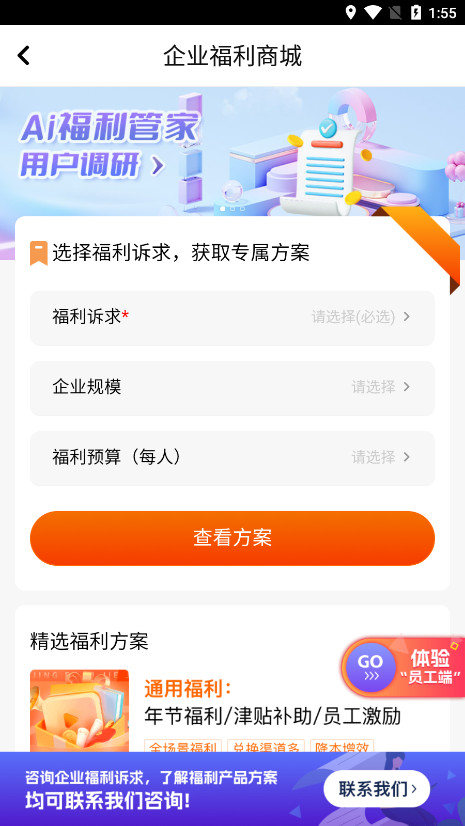 1、关爱积分、关爱额度、员工午餐、员工通讯等,覆盖各种消费场景,吃喝玩乐、衣食住行全涵盖