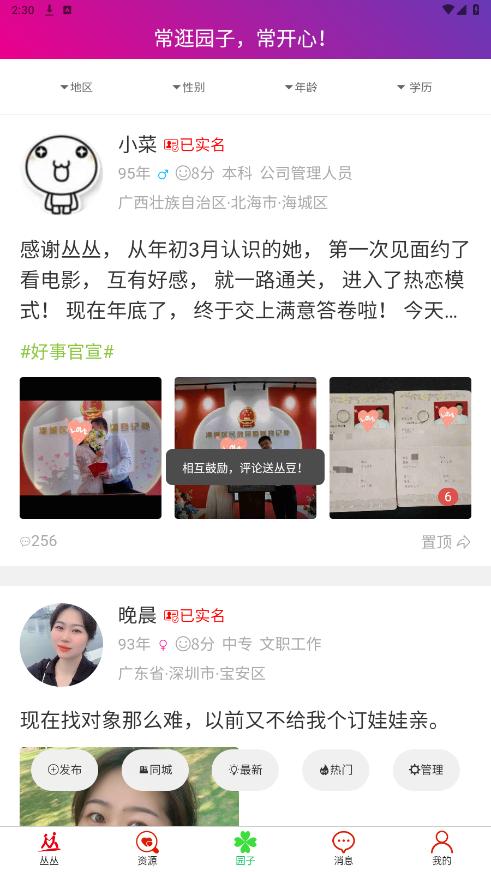 丛丛脱单拥有严谨的审核机制和精准的匹配技术,赢得了众多单身男女的信赖与好评。在这里,用户可以轻松找到与自己志同道合、心灵相通的伴侣。平台不仅提供了便捷的交友渠道,还营造了温馨、积极的交友氛围,让单身生活不再孤单,是单身人士寻找真爱的理想选择。