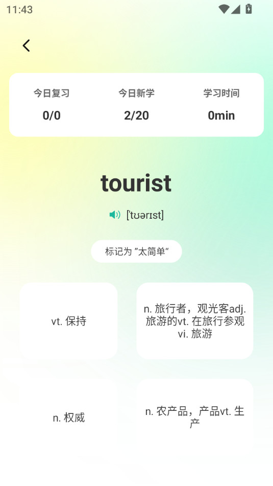 点击单词的意思进行学习,如果觉得简单进行标记就可以了