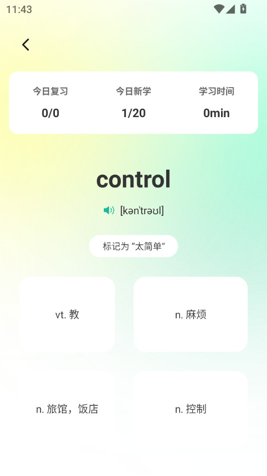 超1000万四六级、考研人在用的背单词APP!涵盖小学、初高中、英语四六级等多种类权威词库四级/六级/考研/等.权威词库让你挑选,让学习更舒心。针对你的需求精准定位刷题的题库。
