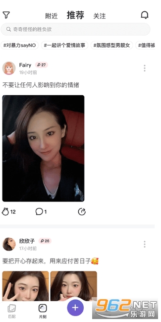 「视频vlog」:文字不够精彩让视频记录生活,美颜滤镜加上你颜值百分百,趣味广场话题等破冰互动内容,帮你每日快速提升双方之间的亲密度。