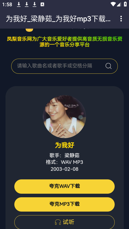 进入之后可以进行下载,也可以点击试听进行听歌