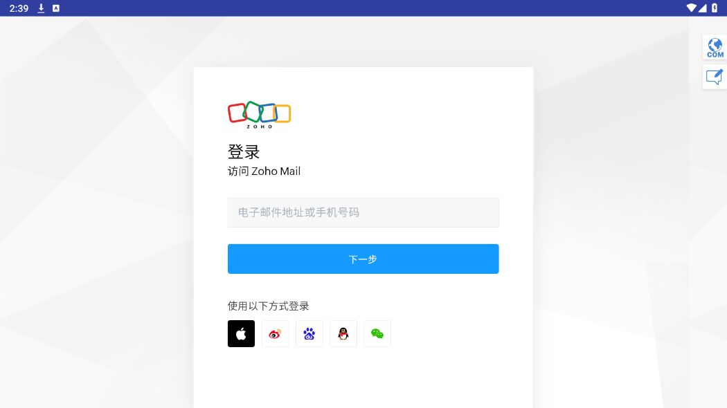 打开Zoho Mail,点击下方的立即注册