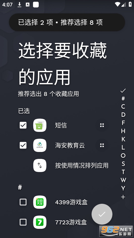 所有应用程序都在整齐排列的列表中按字母顺序和按使用情况排序。你甚至不必刷卡就可以打开它!
