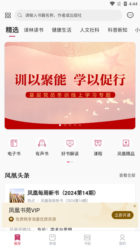 “凤凰书苑”是凤凰出版传媒集团精心打造的融合出版代表性产品,以有声资源为内容主体,定位新一代知识付费阅读社交平台进行内容资源的发布。