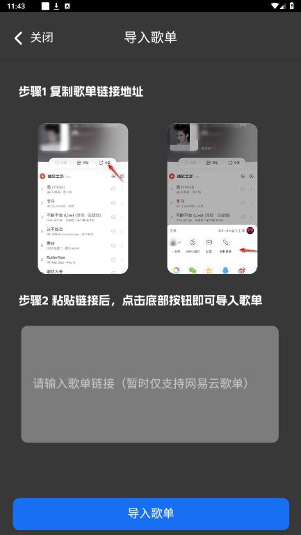 进入后输入歌单链接,点击导入歌单,即可导入成功