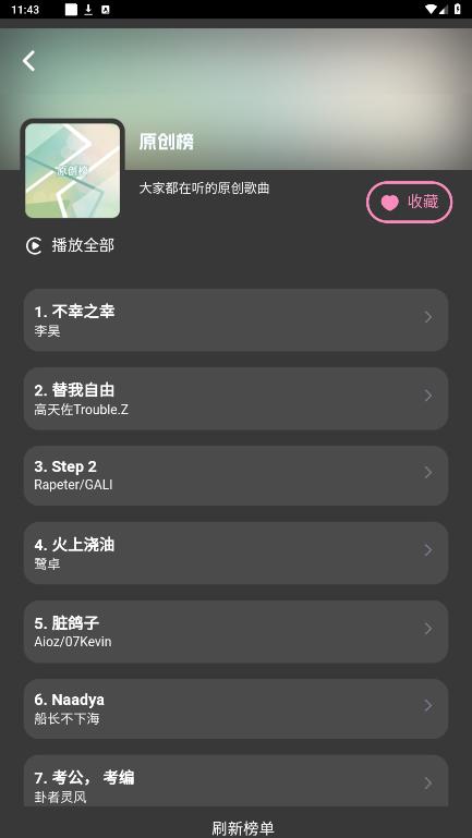 软件提供每日更新的歌曲榜单,让用户能够紧跟音乐潮流,不错过任何一首流行金曲。同时,用户还可以收藏自己喜欢的榜单,随时回顾经典歌曲。