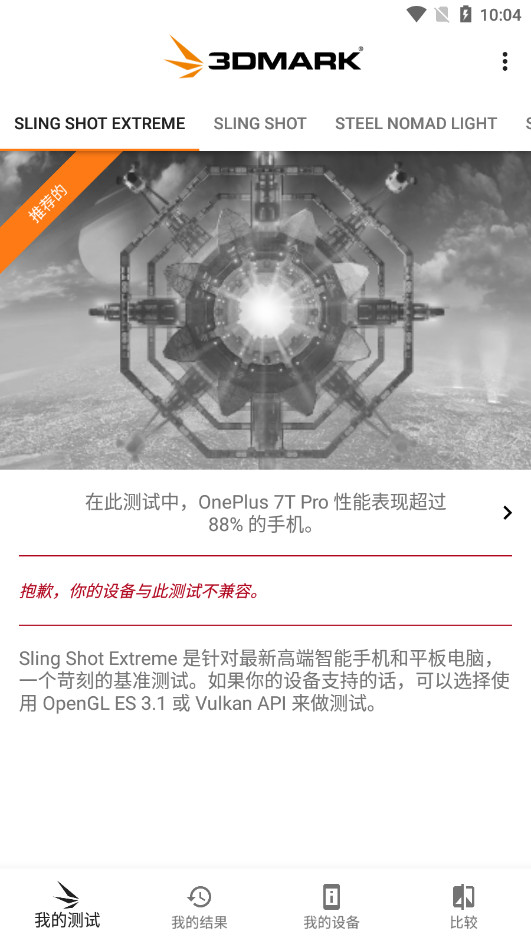 该应用程序便于您找到适合设备的测试。3DMark应用程序一经启动,会针对用户的设备推荐最佳的基准测试。
