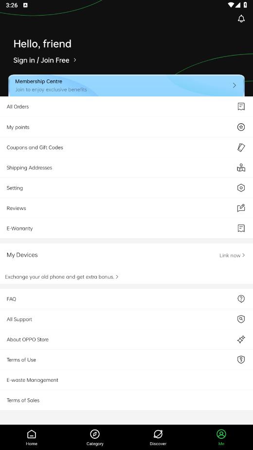 打开oppo商城海外版app,点击右下角sign up