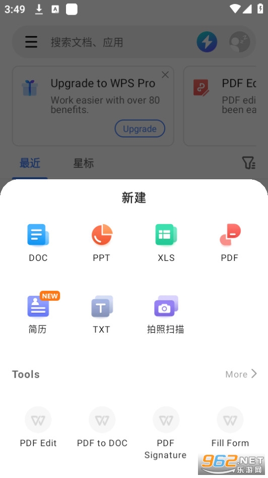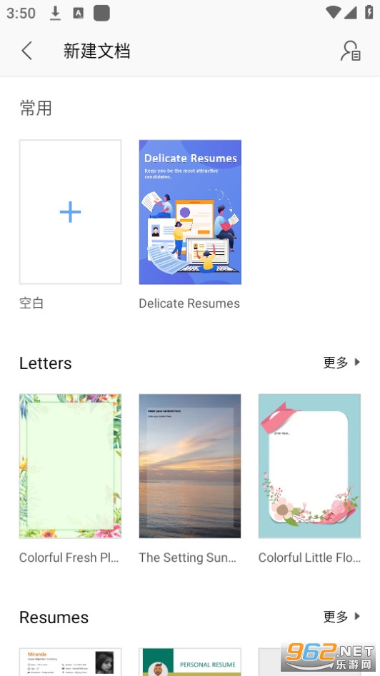 -新建文字文档,并提供信纸、简历、合同等模板-打开26种文字格式文档,包括加密文档