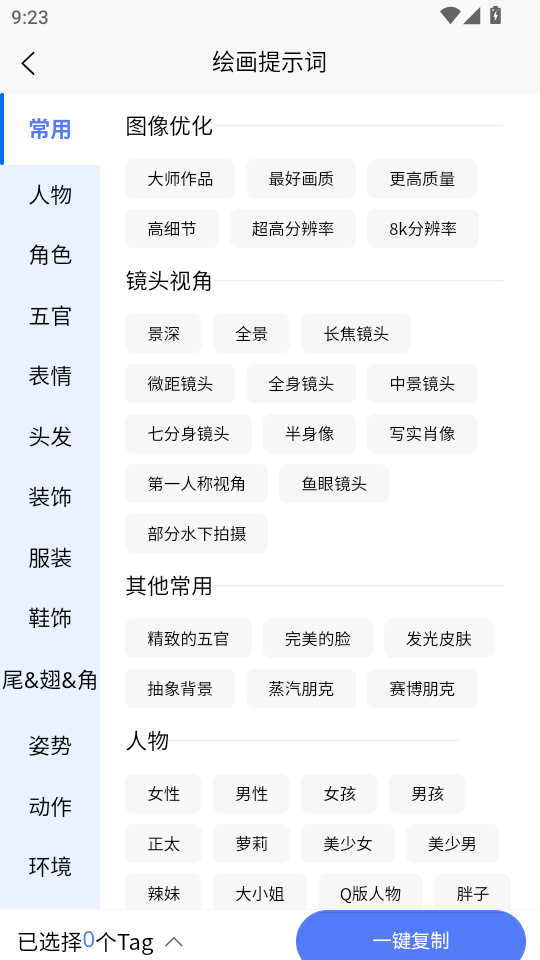 3、下方会出现提示词框,选择完成后,点击一键复制,然后到百度AI免费作图,或者类似AI作图软件里面生成图片即可