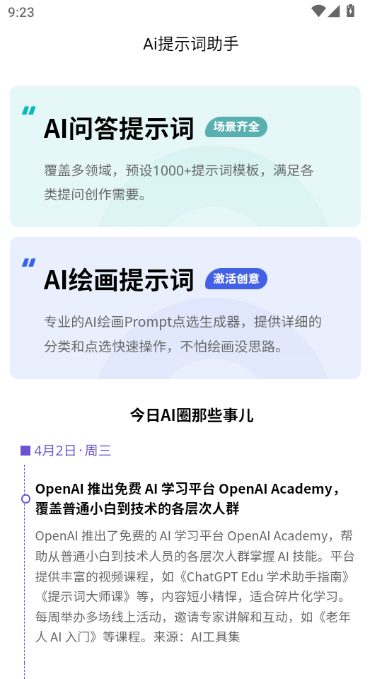 1、进入软件后,可以选择AI问答提示词,或者AI绘画提示词