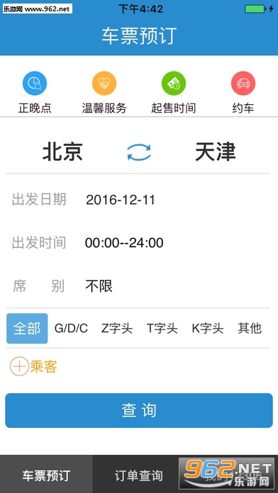 与12306网站购票功能保持同步,可在手机和网站之间交叉办理购票、退票、改签等业务。