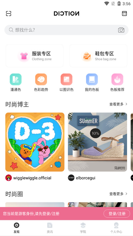 DICTION APP囊括: 趋势资讯、蝶讯学院、时尚博主、色彩实验室等。