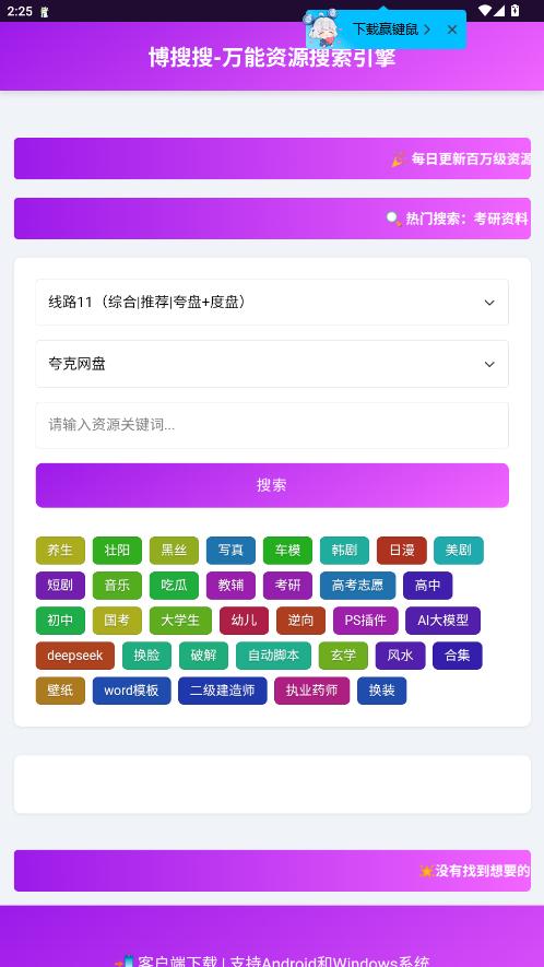 打通资源聚合(网盘搜索+视频解析)、安全防护(图片加密)、社交整活(QQ强制加好友)三大赛道,实现「找资源-改文件-玩社交」的闭环体验。