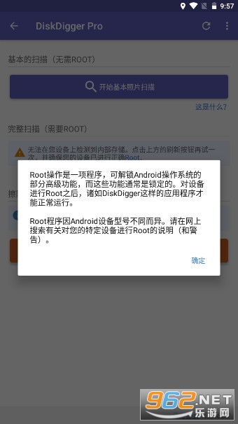 当您在有root权限的设备上使用该应用程序时,您可能会看到一个超级用户请求窗口。确保按“允许”以授予DiskDigger根访问权限。