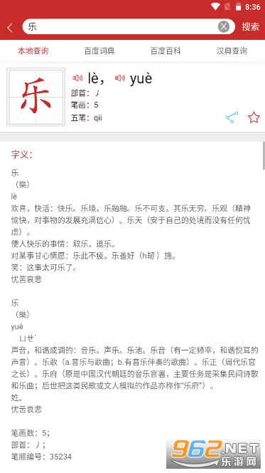 3.全新的汉语手机字典,支持中文,拼音,五笔多种方法的输入,超级贴心的查询功能,有需要的用户快来下载吧。