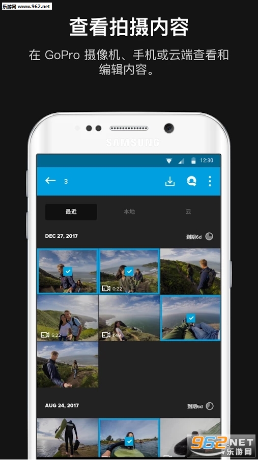 《GoPro最新版》是一款编辑视频制作短片。或者逐帧浏览视频和截取静态照片,轻松分享。 直接将你最喜爱的照片和视频发布到和上。或通过短信或电子邮件分享。