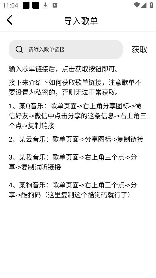 3、支持导入主流音乐平台的歌单,方便用户管理自己的音乐收藏。
