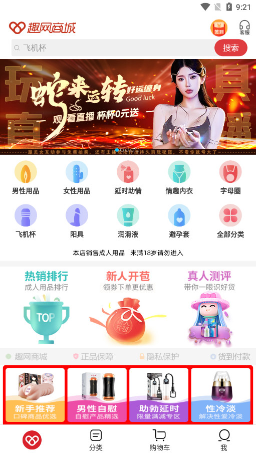 趣网商城通过网络直销,省去商城分成和经销商费用,在高 品质的前提下以最优惠的价格出售,让顾客通过5折甚至 2折的价格买到在一般情趣实体店的同品质产品