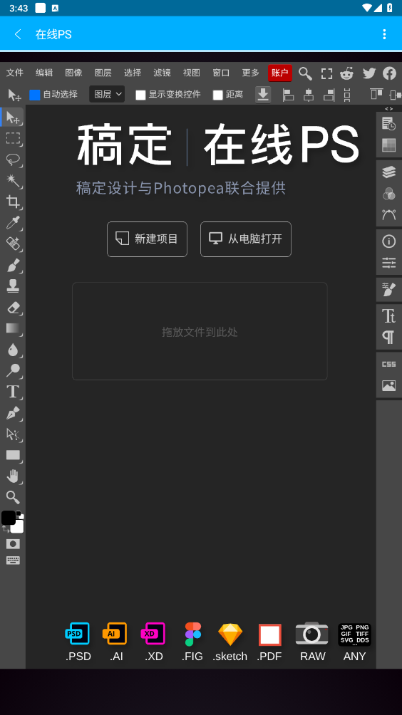 工具箱界面提供了在线ps,觅元素,兔二工具,一个木函等海量工具可以直接使用