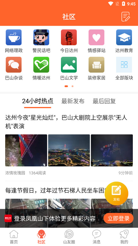 《凤凰山下app》带来有思想、有温度、有品质的作品,先后开设的《走近达州》,带领大家深入解达州的历史文化、风土人情,聚焦于当下达州人的生活状态与奋斗故事;为弘扬主旋律、传播正能量,支持转发其他人的本地圈 / 帖子到本地圈展示,还支持分享转发、评论转发,让有趣的内容和有用的信息能够快速传播。