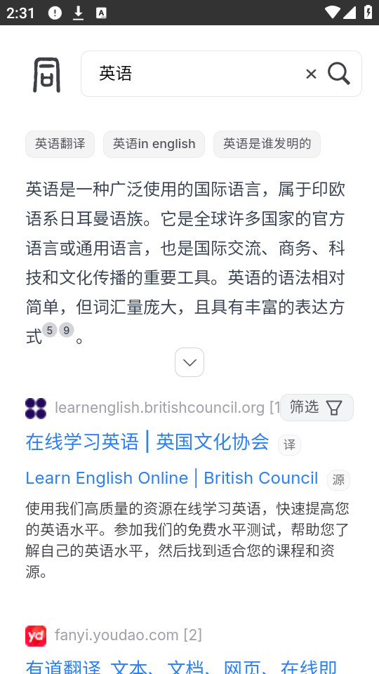 大同默认同时搜索英文和中文网页,在科学科普、学科专业知识、英文官网查询上结果质量格外好——