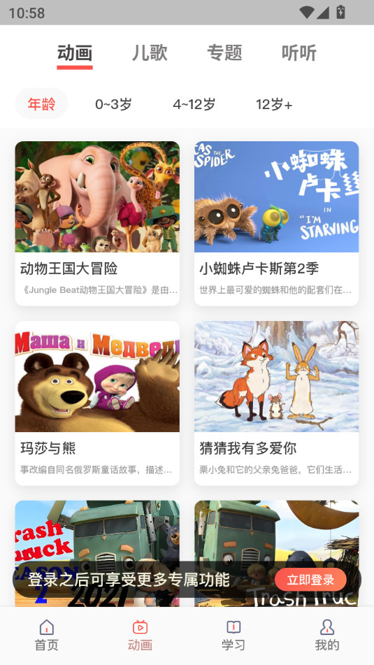 收录国内外海量儿童故事、睡前故事、经典儿歌、文学名著...满足不同年龄孩子需求。