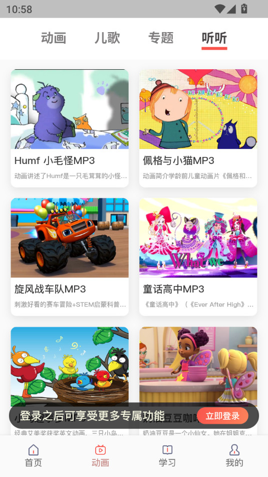 正版引进的精品中英文动画宝藏APP!优质原版中英语动画,全部高清原版翻译,带给您超棒的英语视听体验!倾力推荐。