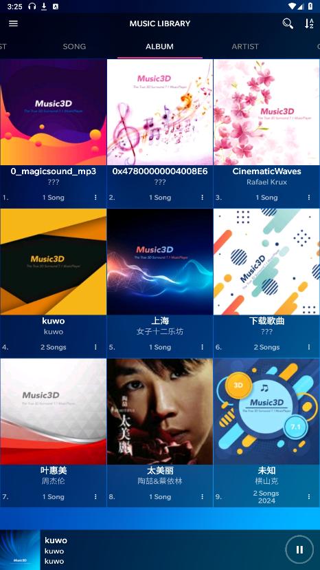 《Music3D》是一款颠覆传统听觉体验的本地音乐播放器,将先进的3D环绕7.1音效技术与优雅易用的界面设计完美融合,为用户带来前所未有的音乐盛宴。无论您是在家中的舒适角落,还是在通勤的喧嚣之中,只需一键开启,即可瞬间被包裹在细腻、立体的音乐世界中,仿佛置身现场,与艺术家面对面共鸣。