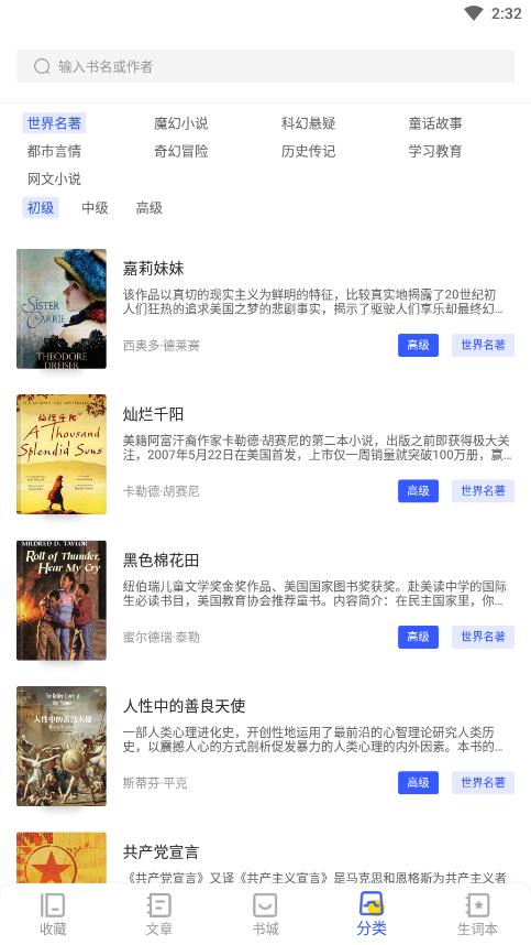 打开蒙哥英语阅读app,在搜索框输入想看的小说或者作者名