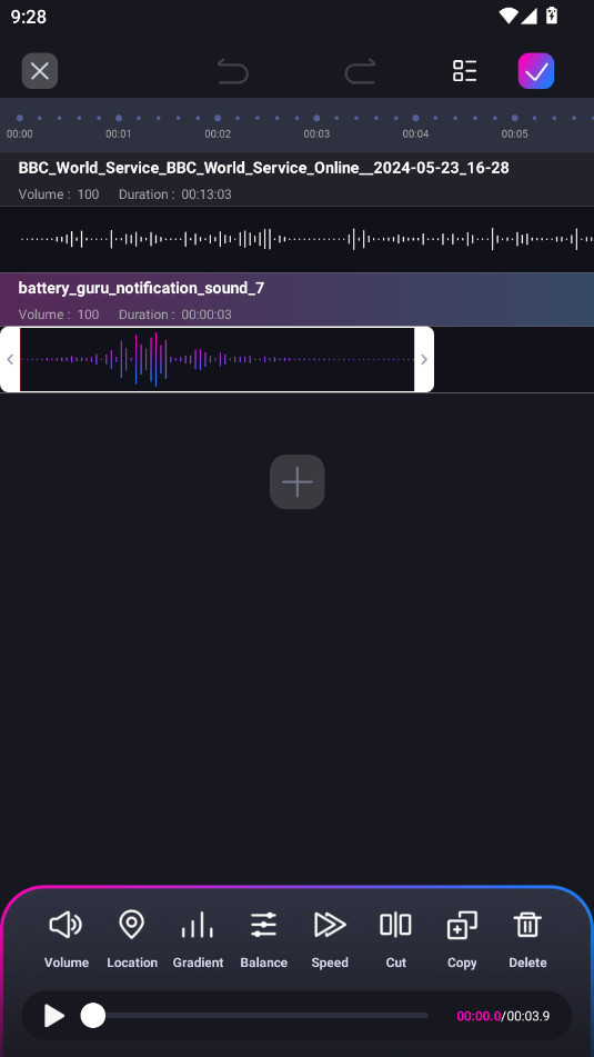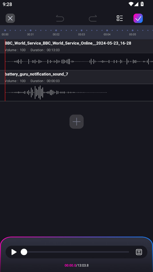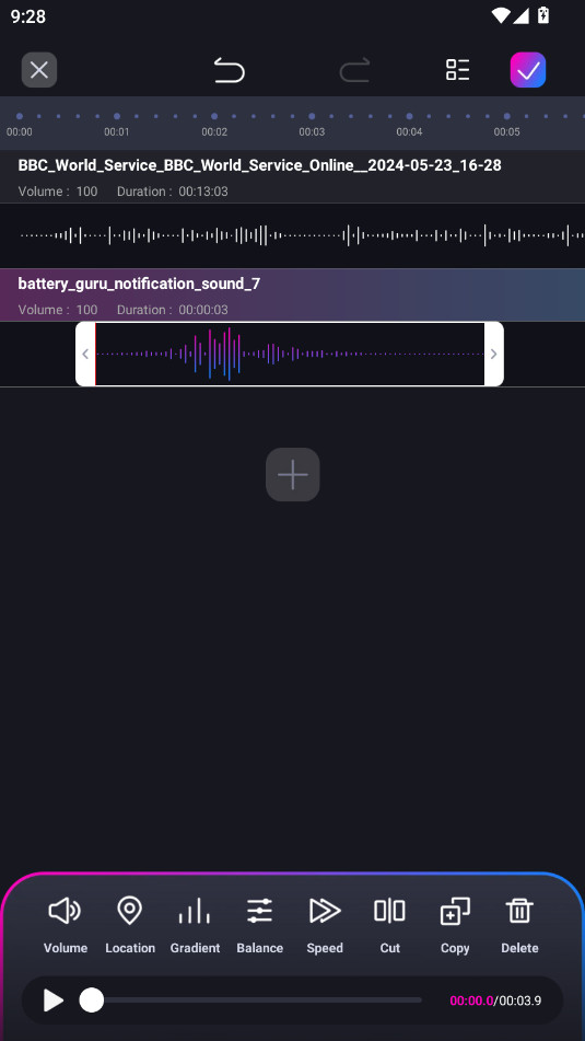 5.编辑音频文件时,可以添加多个音频文件进行多轨编辑,并且可以调整每轨的优先级;