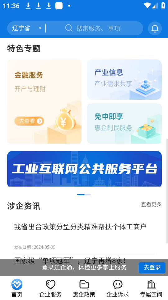 《辽企通平台》是一款面向企业用户设计开发的政务服务APP,该平台围绕企业全生命周期,为企业提供了多项特色服务。涵盖了开公司、办业务、找政策、提诉求、查信用、招人才、融资金、拓商机等特色服务。它设置了“首页”、“营商服务”、“营商政策”、“营商诉求”、“企业专属”五大频道,以满足企业不同方面的需求。面向企业法人和企业经办人员。企业法人可以通过APP实现移动端办事的统一身份认证,享受企业开办、纳税缴费、融资贷款等服务。企业经办人员则依托授权体系,以授权根据不同角色在线办理企业相关业务。