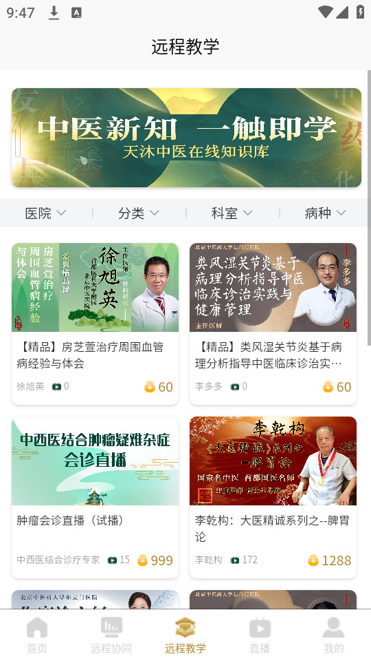 《天沐中医》是一款集教育、交流、实践于一体的综合性中医应用,致力于将传统中医药的精髓与现代科技相结合,推动中医药领域进入智慧医疗新时代。秉持着“传承中医文化,弘扬国粹精神”的教育理念,为广大中医药从业者及爱好者提供了一个全面、便捷、高效的学习平台。该app汇聚了中医领域的权威专家和学者,通过视频网课、直播辅导等多种形式,向用户传授中医理论知识、诊疗技能及养生方法。同时,app还结合真实案例分析,使中医知识更加直观易懂,便于用户理解与应用。实现了远程教学与互动功能,打破了地域限制,让用户可以随时随地参与学习。通过在线直播、远程教学等形式,用户可以观看名师的讲解和示范,了解中医诊疗的最新技术和方法。