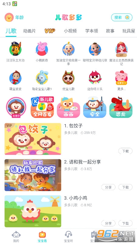 百万儿歌故事、动画绘本、儿童游戏、早教童谣、亲子游戏……更多优选内容给孩子一个快乐的童年。